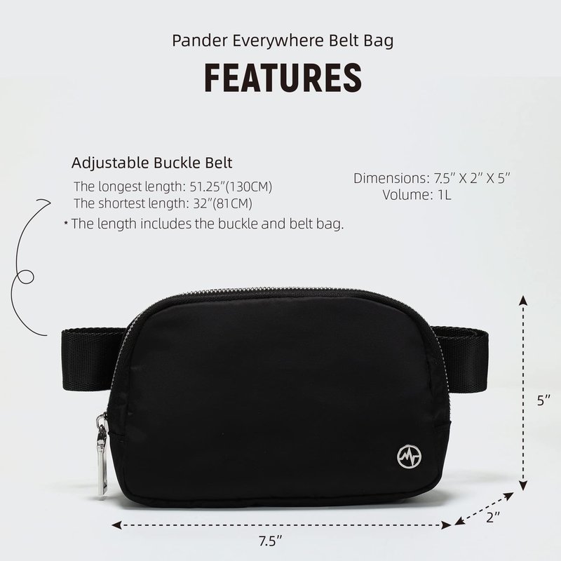 - ✅ MATERIAL - PANDER everywhere mini belt bag are made of nylon fabric, which is water resistant and anti-abrasion, ensure a long-lasting usage. The finest quality zipper would allow to get into the bag without worrying about dumping the contents.