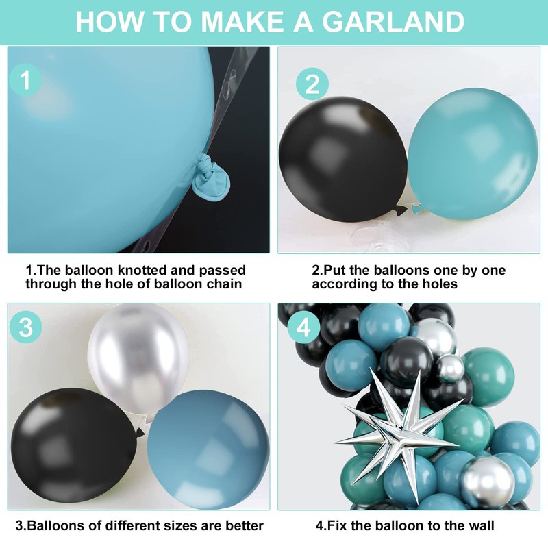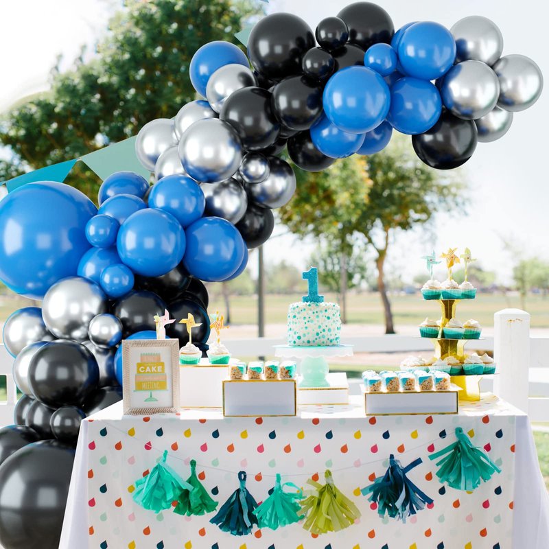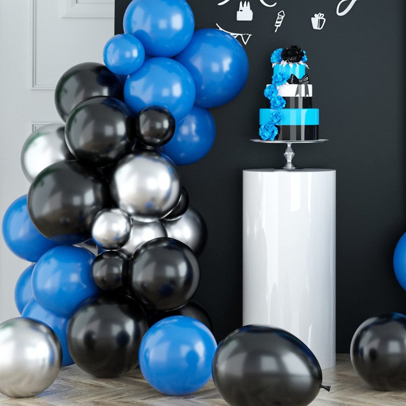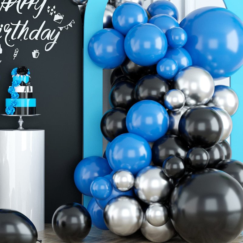 - Black Blue Silver Balloon Garland: The blue silver balloon garland kit will create the unique party and make your party more impressive and memorable. You will get 10inch: 20 x black, 20 x dark blue, 20 x silver; 5inch: 5 x black, 5 x dark blue, 5 x silver; 12inch: 10 x black, 10 x dark blue; 18inch: 1 x black, 1 x dark blue; 1 x balloon chain, 2 x dispensing.