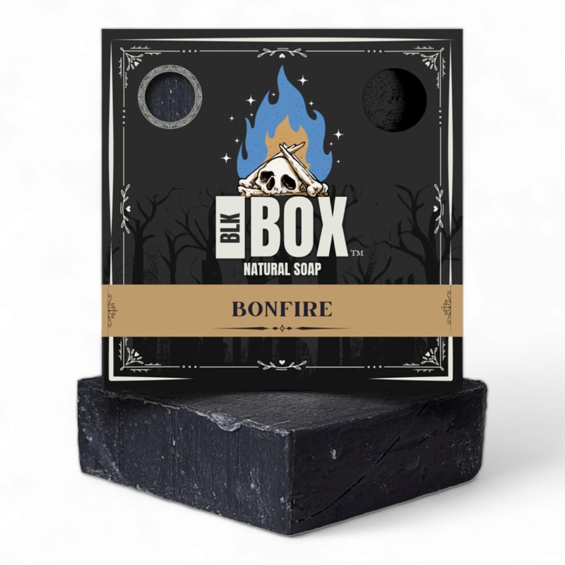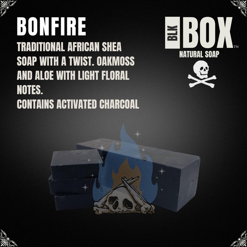 Black Box Limited USA MADE Men's Natural 5oz Bar Soap, Moisturizing Body Wash Made from Natural Oils - Handmade Cold Process No Harsh Chemicals Activated Charcoal Shea (Bonfire)