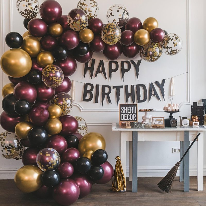 Black Burgundy Yellow Balloon12 Inches Black Burgundy Gold Confetti Balloons for Kids Magical Wizard School Party Birthday Decorations Birthday Balloons Baby Shower Engagement Party Supplies