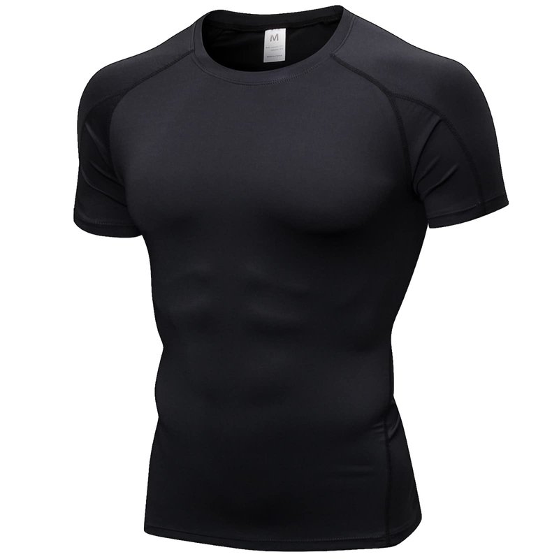 Black Compression Shirts Men Short Sleeve Workout Gym T-Shirt Running Tops Cool Dry Sports Base Layer Undershirts