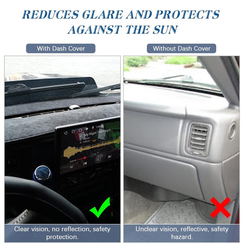KEDAKEJI Dashboard Cover has a protective effect, high UV inhibitor, and also helps to reduce dangerous windshield glare, making it cool in summer and cold in winter, and warmer in winter. The harmful rays of the sun are notorious for zapping the life from a dashboard. Prevent your dash from cracking or hide the damage already done.