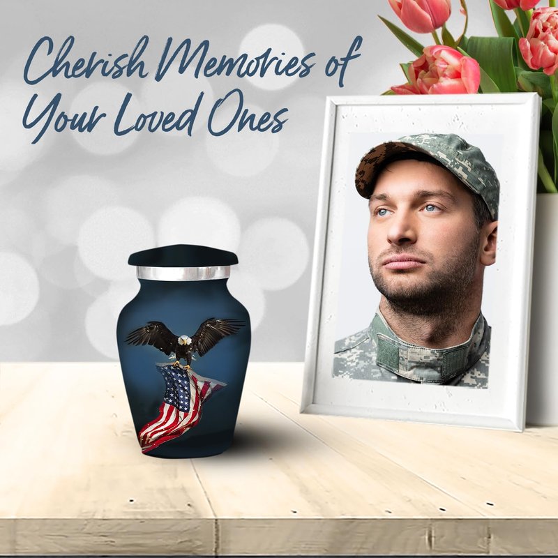 Black Eagle Urn Mini - Small Urn for Human Ashes Keepsake with Box & Bag – Military Urn with Eagle & American Flag – Honor Your Loved One with Small Cremation Urn - Small Urn for Army Veterans