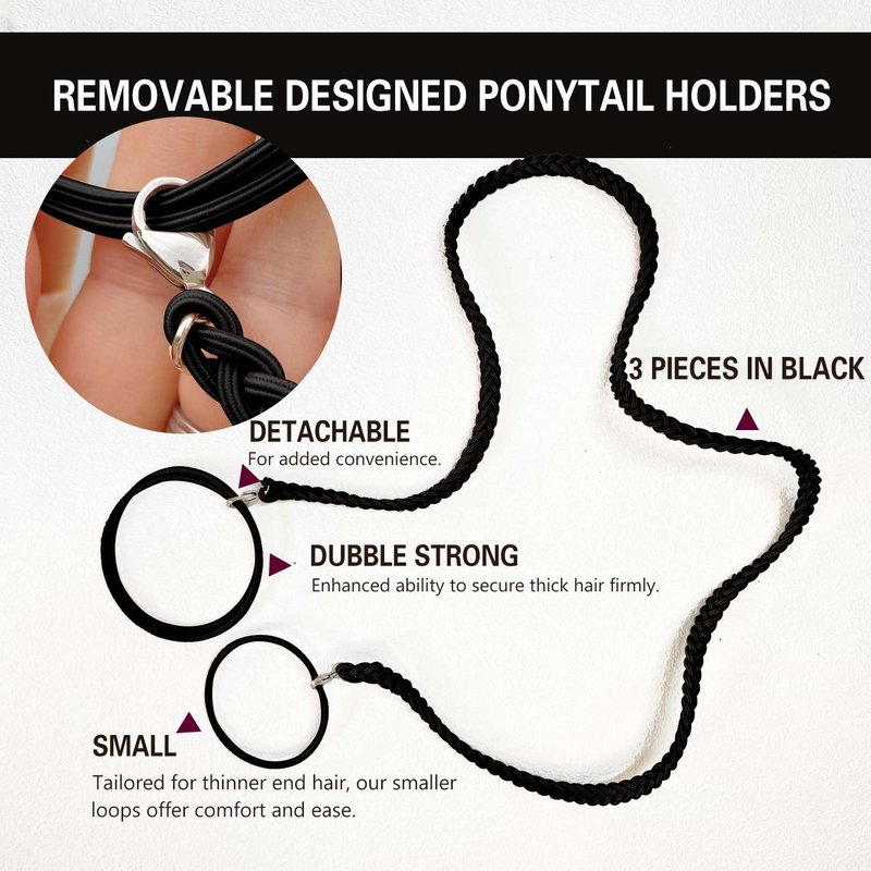 - UNIQUE REMOVABLE DESIGNED BRAIDED PONYTAIL HOLDERS:The sport hair tie can be devided 8 separate parts: large hair tie, long hair tie and small hair tie. You can DIY your favorite hair ties adding to the long thick braided hair wrap ropes based on your hair thicknesss. All metal connects are stainless steel