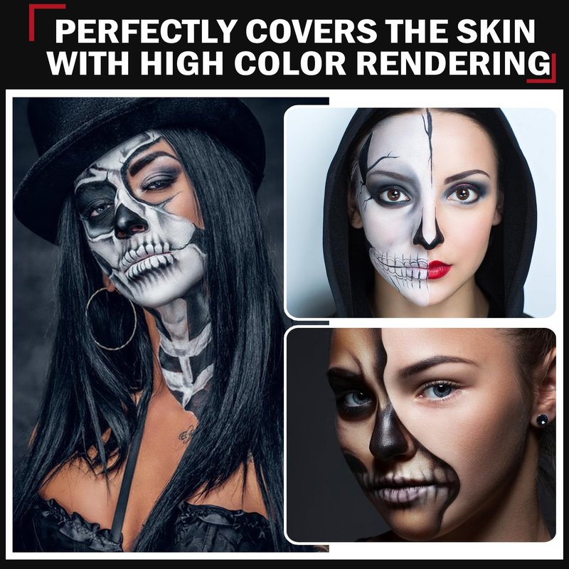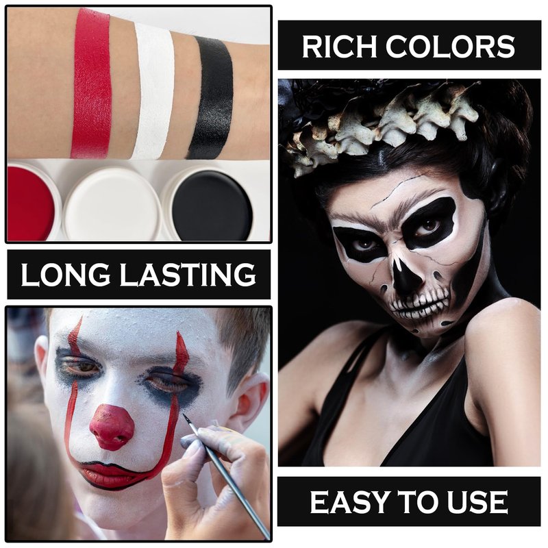 - ♦【Creative Painting】Unique creative painting makes you stand out, black face paint is the first choice for lovers of Halloween special effects makeup, zombies, goth white foundation makeup, etc. Both beginners and professional makeup artists can use it well.