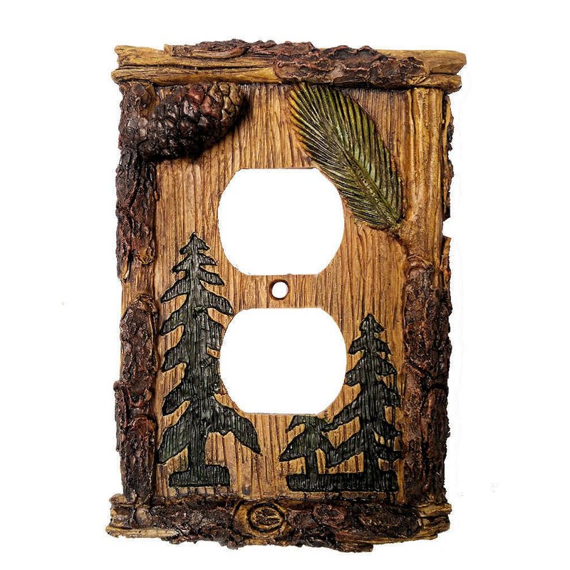 Black Forest Décor Rustic Cabin Decor Pinecone & Pine Tree Outlet Cover