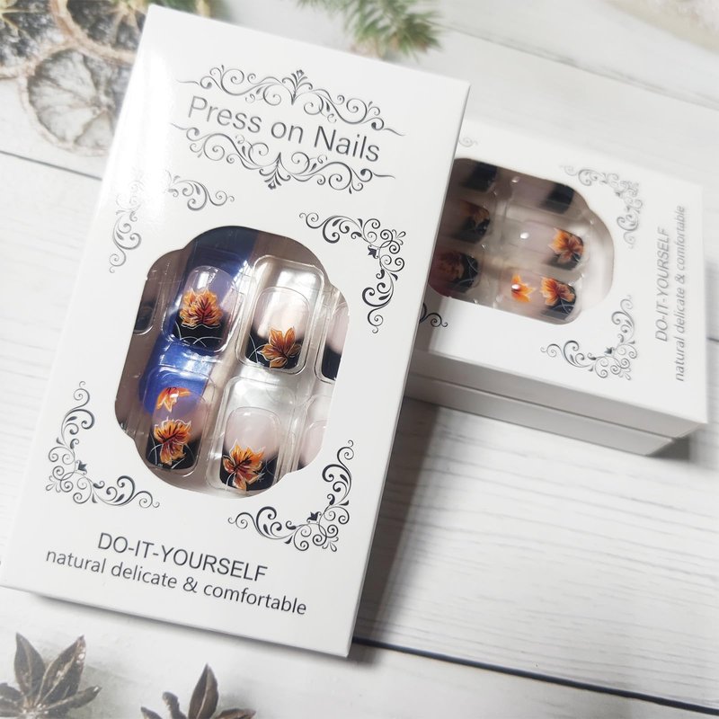 - Thanksgiving Maple Fake Nails Package Contains: 24Pcs cute short false nails, 24 pieces of jelly glue, 1 mini nail file, 1 wooden stick. (Durability of jelly glue is not as good as liquid glue, but it makes fake nails reusable. Please use your suitable glue according to different scenes)