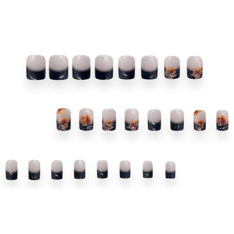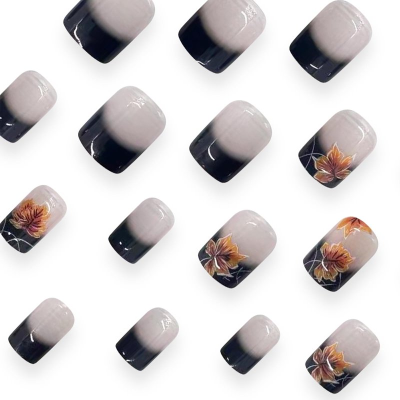 - Style: Black French Tips Maple Leaves