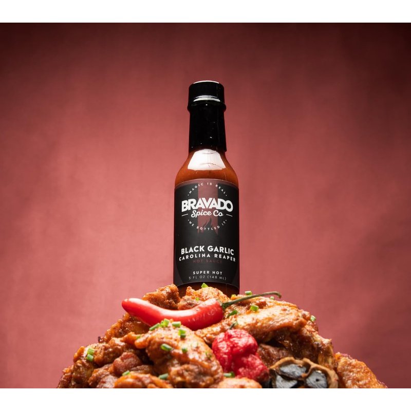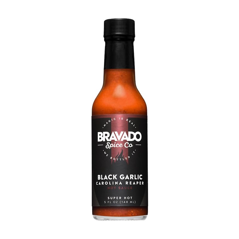 Black Garlic And Carolina Reaper Hot Sauce By Bravado Spice FEATURED ON HOT ONES Gluten Free, Vegan, Low Carb, Paleo All Natural 5 oz Bottle Award Winning Gourmet Hot Sauce