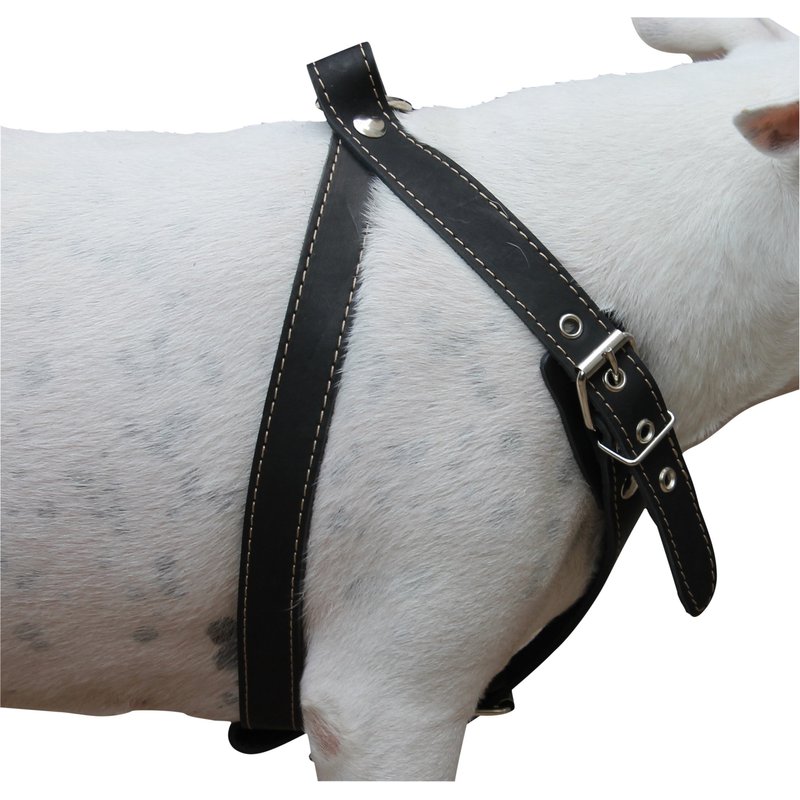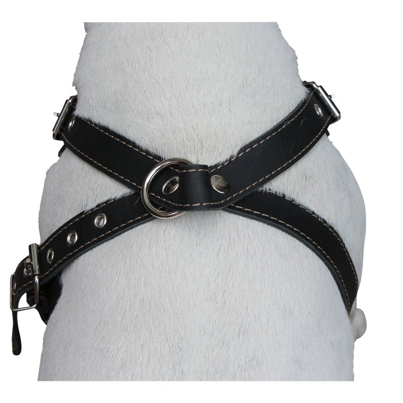 Made of 1" wide high quality genuine leather. Strong and comfortable, wide chest piece designed to equally distribute tension. Best choice for daily walks and training. This size is recommended for Medium breeds, sized to fit 25-30 inches chest circumference.
