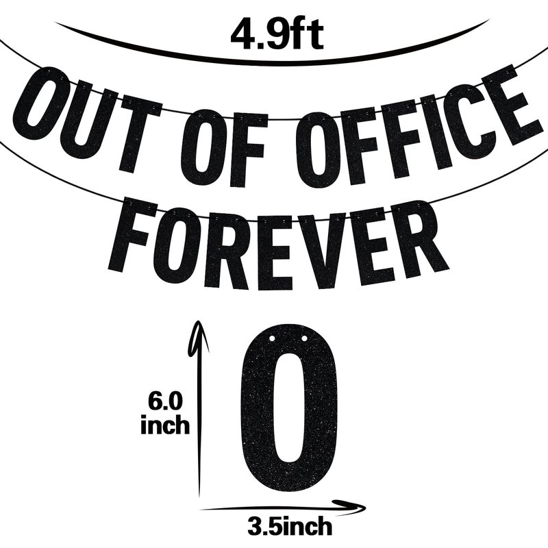 Black Glitter Out of Office Forever Banner, Officially Retired/Happy Retirement, Funny Retirement Party Decorations Supplies