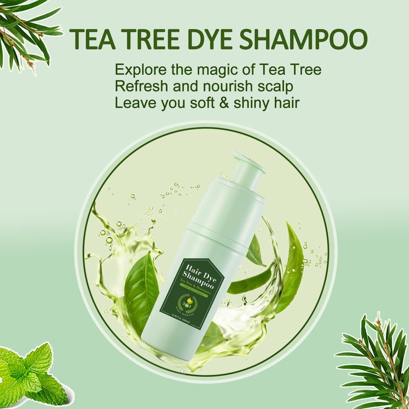 Tea Tree Black Hair Shampoo for Gray Hair, Instant Hair Color Shampoo for Women and Men,Shampoo Hair Dye Works in Minutes, Long Lasting Black Hair Shampoo