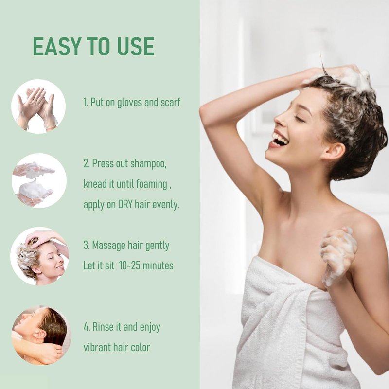 - 【Instant Hair Color Shampoo】No need mix in advance, all your need to do is press the bottle and apply instant hair color shampoo on Dry hair, let black hair dye sit for 10-25 minutes and rinse it, when you are satisfied with the coloring result. This dye shampoo can be used every 2-3 weeks for better result.