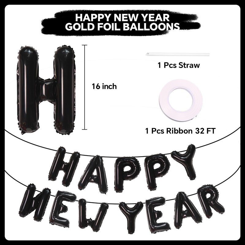 - Package Include: 16inch 'HAPPY NEW YEAR' foil letter balloons. Each set of new year balloons comes with a straw to help you inflate each letter and a long ribbon.