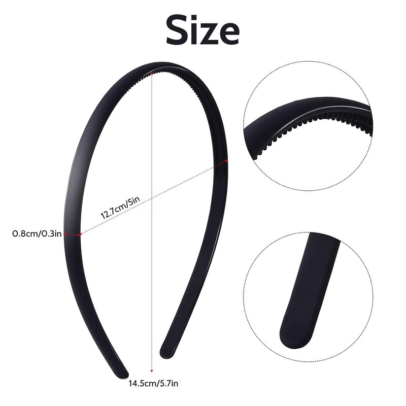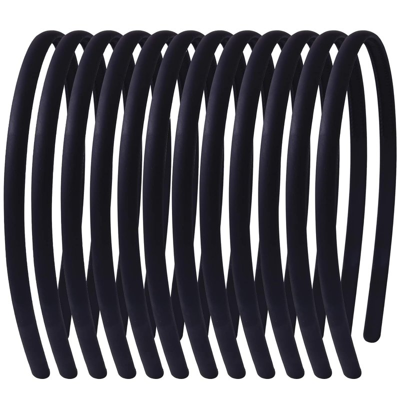 Black Headbands for Girls 12Pcs Skinny DIY Head Bands Hard Thin Headband with Teeth, 8mm Rubber Plastic Hairbands for Kids Teens Party Favors