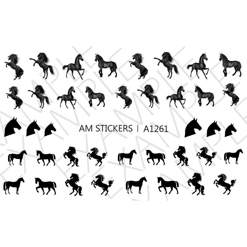 Black Horses Water Nail Art Transfers Stickers Decals - Set of 40 - A1261