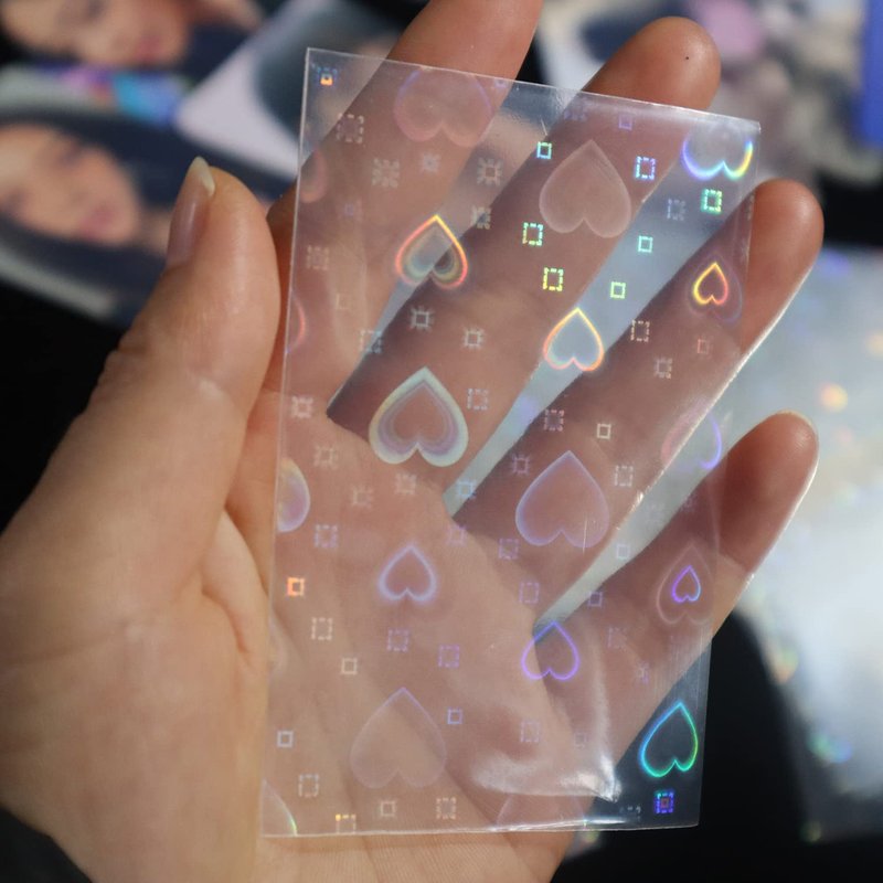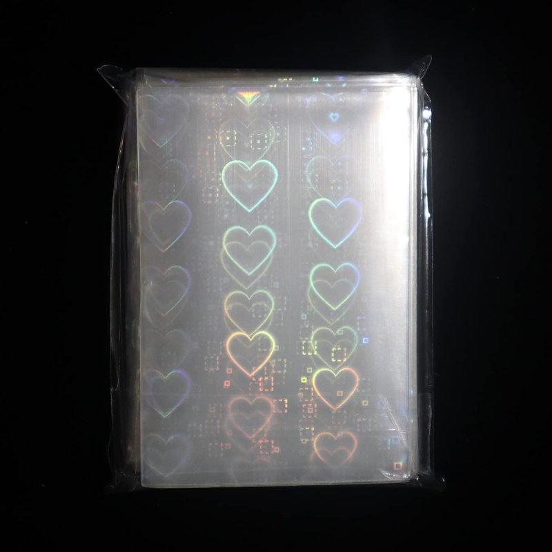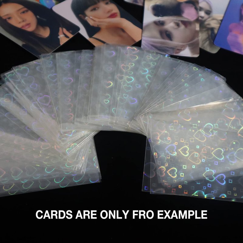 The back of the Sleeves are transparent, the faces of the sleeves are foil, it makes a normal card into FOIL CARD easily, very funny! Choose the right type and size you need. All the cards in the pictures are only for showing example, not included in the package! These sleeves are loved by the KPOP card collectors, they make your cards look more beautiful. 1 order is for 100 pieces Extra high clearness one side and sweet love heart foiling style on the other side. Acid free No PVC For professional gameplay Ideal fitting and size Prevents bent corners and scratches Longer playability and lifetime. Side loading, you inseart cards from the left or right, please be careful.