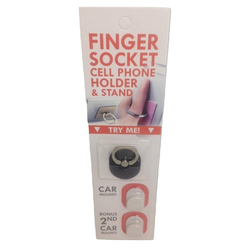 Finger socket cell phone holder and stand with 2 interior car mounts included for a hands free experience! The metal ring holder & stand rotates 360 degrees and flips 180 degrees. Peel off the thin, clear plastic tape covering the adhesive and place on your mobile device. Press firmly on the decorative stand for a few minutes to adhere. Simply pull off to remove or adjust the stand. A clean, dirt free, and dry flat surface is recommended on the mobile device. Place the car mount on a clean, dirt free and dry surface and peel the tape covering the adhesive and apply to the surface. Use the phone ring/stand to hook on the mount for a hands free experience!