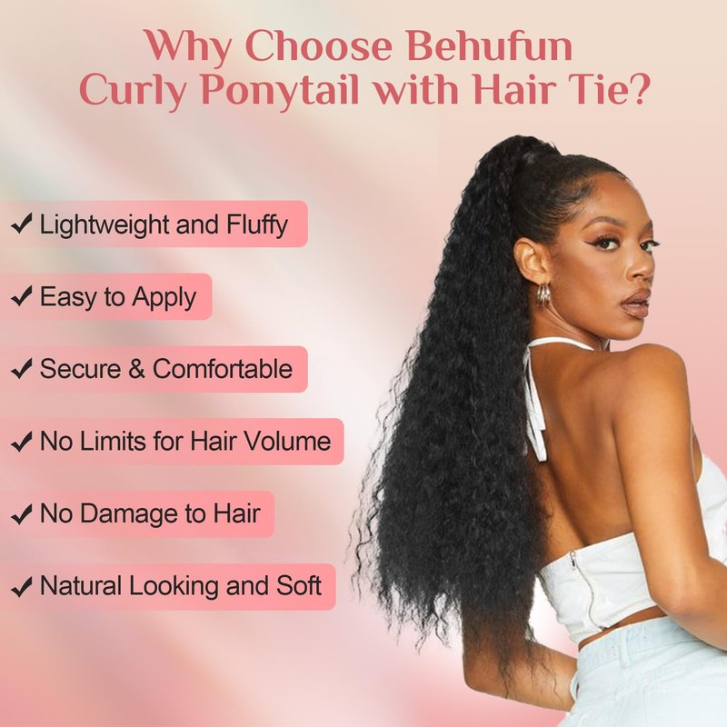 - 🌺Lightweight & Fluffy, Natural & Soft - The Behufun 20" Long Curly Ponytail Extension only weighs 90g/3.2oz, it makes this ponytail extension lightweight and comfortable to wear, allowing you to enjoy all-day comfort without any discomfort. Material: premium synthetic fiber hair, the hair strands is so natural and soft feel.