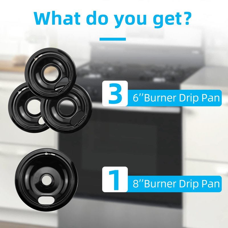 - 【Package Contents】You will receive: 3 x 6 inch WB31M20 drip bowl and 1 x 8 inch WB31M19 drip tray, there are 4 burner drip trays in the package.