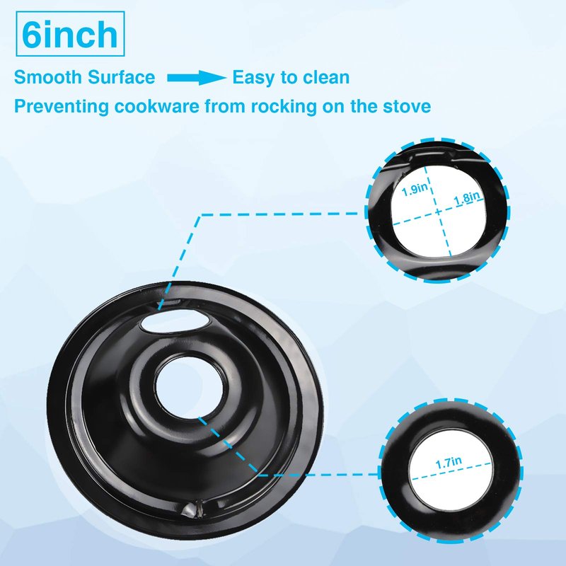 - [6-inch and 8-inch burner drip trays] The replacement kit contain WB31M19 for 8-inch burners and the WB31M20 for 6-inch ceramic drip bowls; It is used to ensure that it does not drop on the flame to ensure its safety.