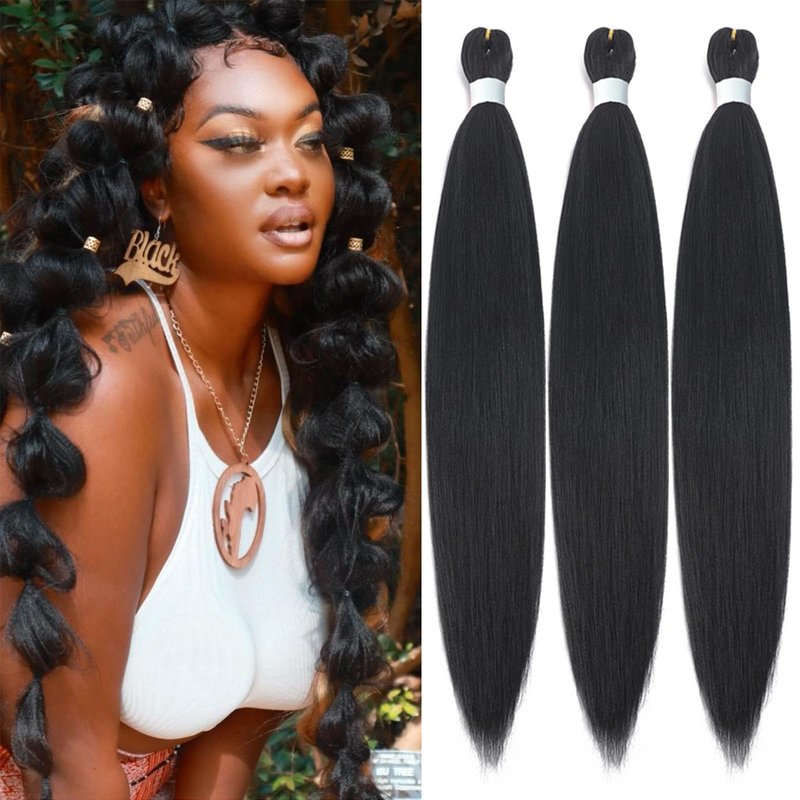 Black Pre stretched Braiding Hair, 26 Inches Kanekalon Box Braids Hair Extensions, 3 Packs Yaki Texture Braiding Hair Pre stretched