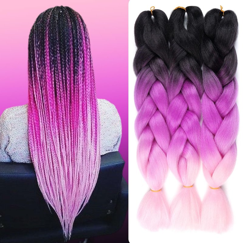 Black Purple Pink Braiding Hair Extensions Ombre Braiding Hair 3 Packs 24 inch Synthetic Hair for Braiding