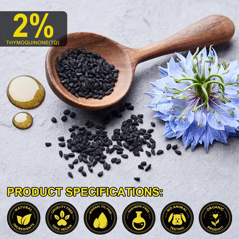 Our pristine, light-hued oil boasts an extraordinary 3-4 times the thymoquinone potency compared to ordinary black seed oils. Crafted from the revered nigella sativa seed, often known as the 'Blessed Seed' in Arab countries.