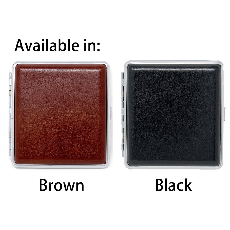 - Covered in genuine smooth leather, this metallic cigarette case is sturdy, corrosion resistant and will last you for years to come. Measuring 4" X 3.25", this case can accommodate a full pack: 20 Kings or Regular size cigarettes. Available in Black and Brown colors and in smooth and crocodile leather prints.