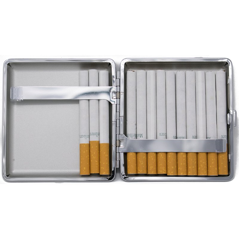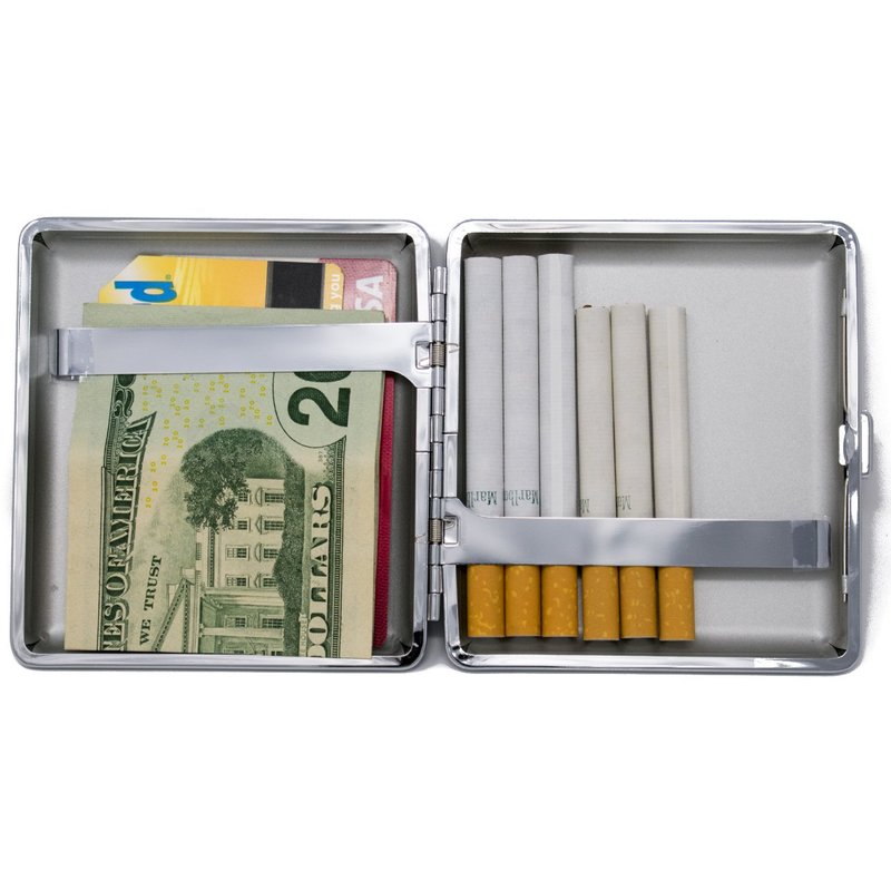 - Crush-proof, this cigarette case features double clips to secure your cigarettes and other smoking accessories. Extra sturdy hinges and a release button on the front ensure that your contents will remain safe and never get crushed.