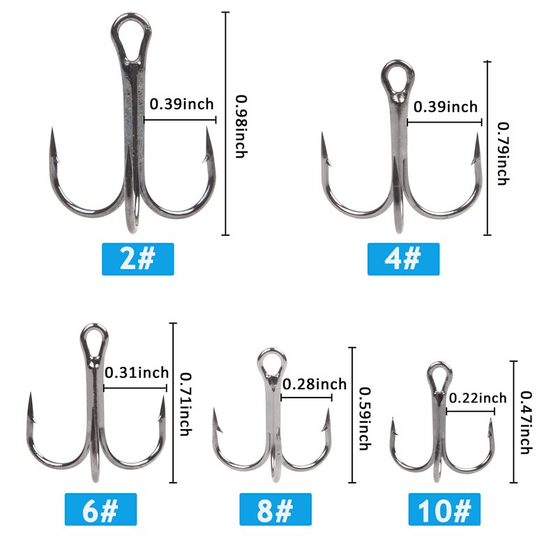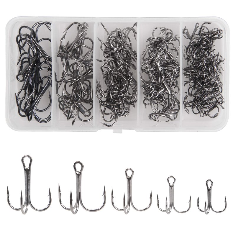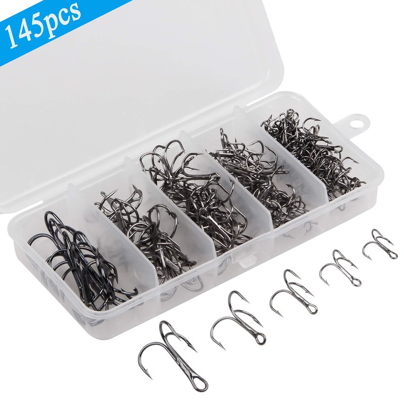 - Black Treble Hooks Kit Available in 5 sizes.145pcs hooks in a box,2#-10pcs,4#-15pcs,6#-30pcs,8#-40pcs,10#-50pcs
