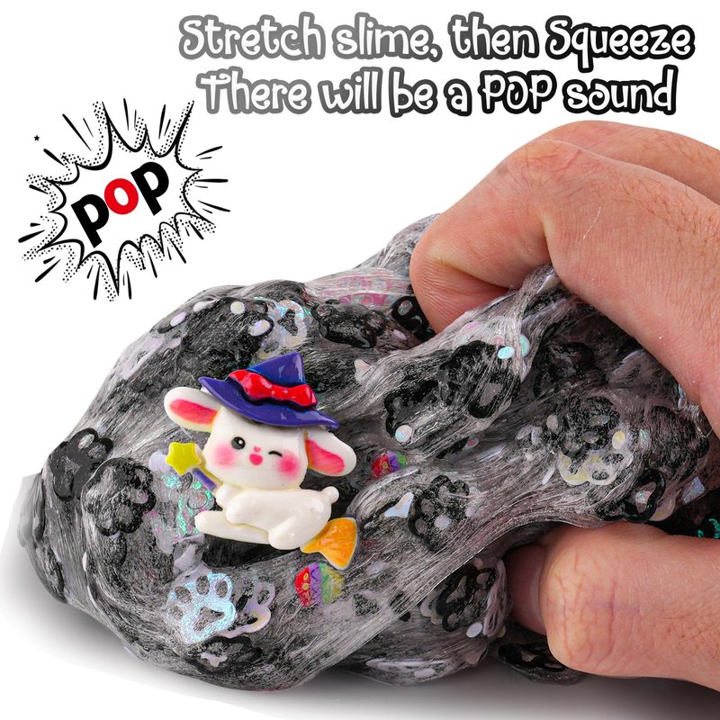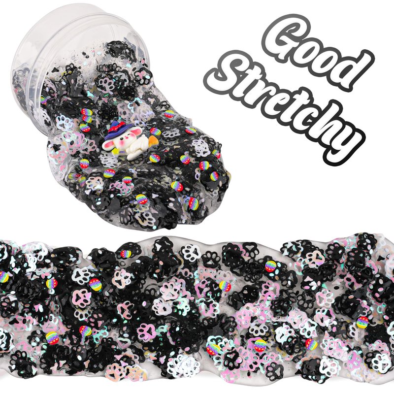 Black & White Cat's Paw Glitter Sequins Slime, Good Stretchy Crunchy Slime, Slime Party Favors for Kids, Slime Sensory Toys, Girls Gifts & Boys Gifts for Birthday Easter Hallowmas Christmas Slime