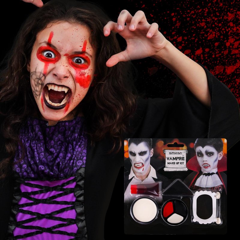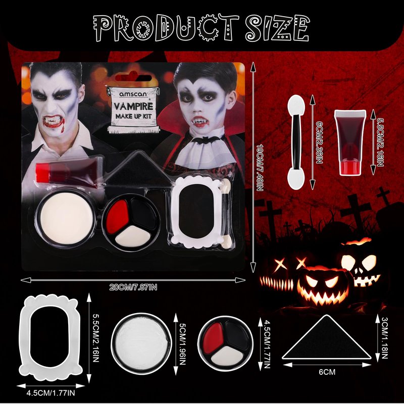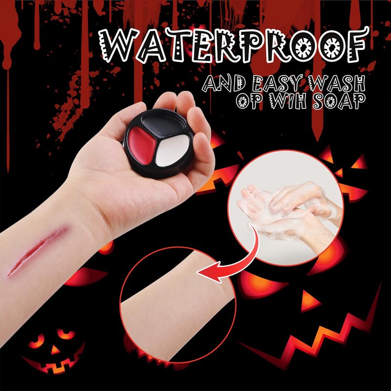 - ✔ Halloween Body Painting: 3 Colors Black White Red Cream Face Body Paint Set + Halloween Vampire Teeth + Washable Fake Blood, which can be used for face and body painting. The texture is light and smooth, and the color is full and rich,which can perfectly create various Halloween SFX makeup looks.