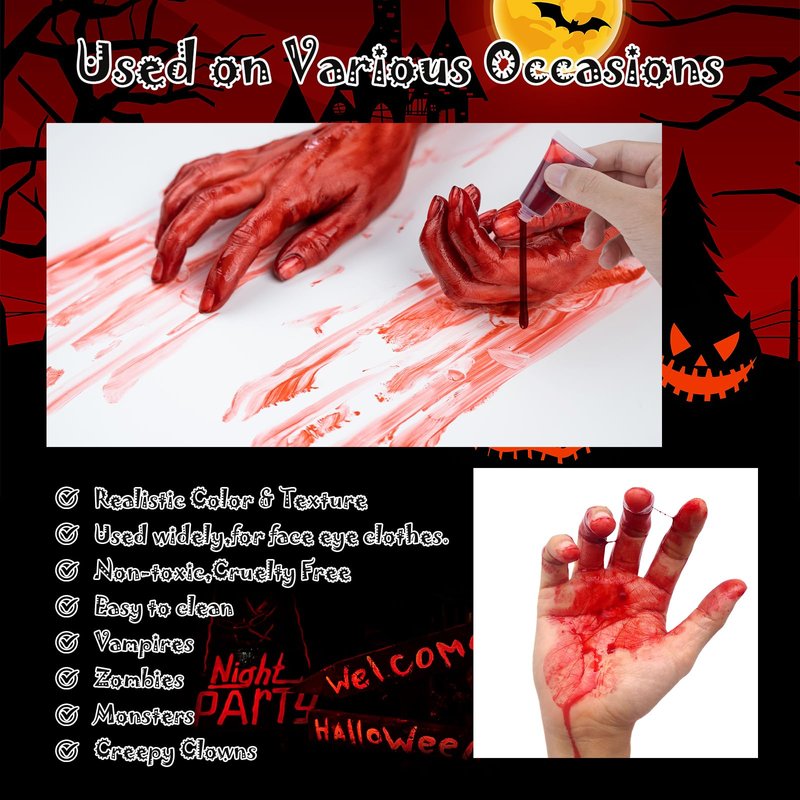 - ✔ Applicable Scenes: Suitable for Halloween parties, fancy dress parties, carnivals, holiday or show special effects, everyday pranks, and more. Help you create bloody scenes and creepy haunted houses.