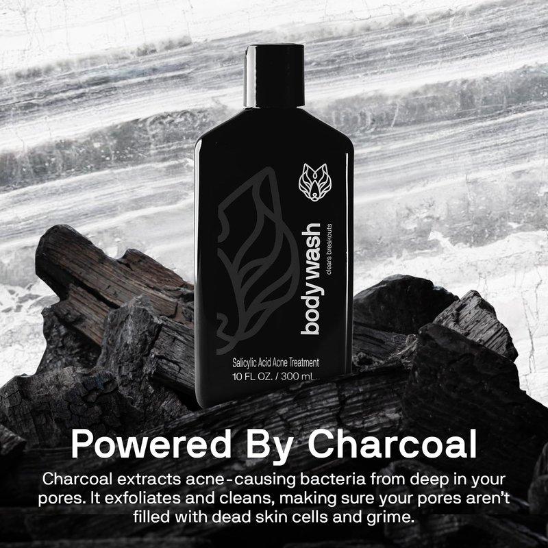 - Deep Clean Your Body: Deep clean and reduce breakouts with Black Wolf Charcoal Powder Body Wash for men, the cleanest body wash in the game. Formulated with salicylic acid to penetrate deep into the pore lining, removing unwanted dirt and impurities that cause breakouts, leaving you with smooth skin. The blue sage and citrus scent will leave you feeling fresh all day! 2 bottles with 10 fl oz each.