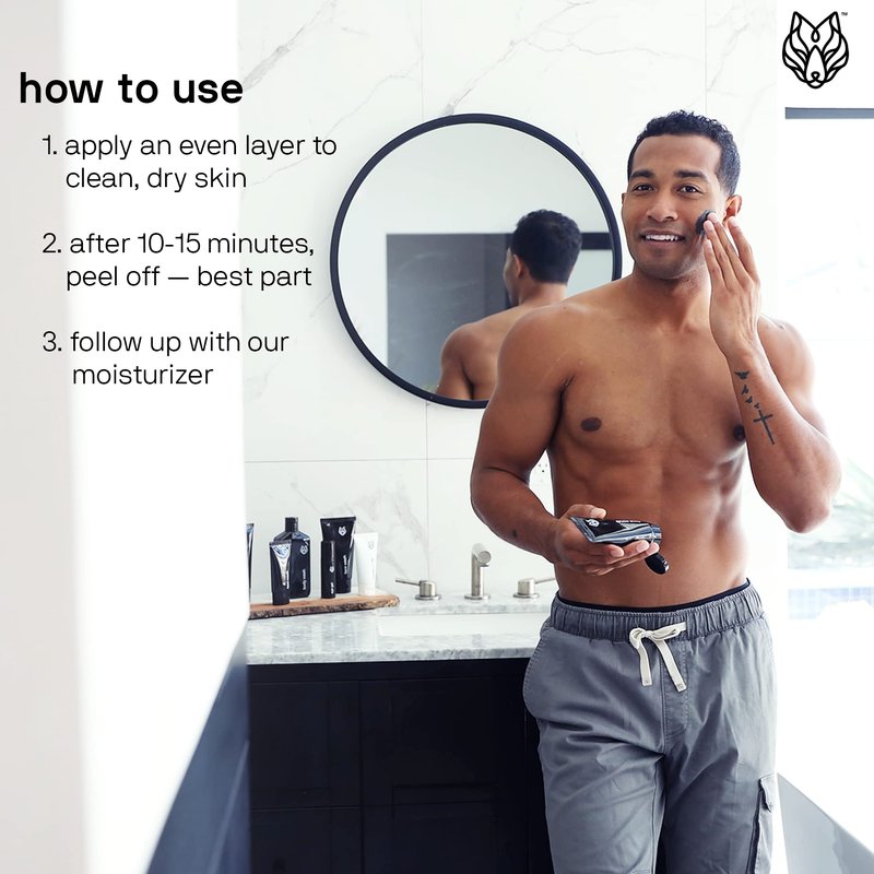 - Detoxifying Charcoal Peel-Off Face Mask: Dissolve and lift away dirt and impurities with Black Wolf Detoxifying Charcoal Peel-Off Face Mask for men. Formulated to emulsify and bind to dirt and oil. Trust us, you will want this one on hand wherever you go. Suitable for all types of skin. Each bottle contains 2 Fl oz.