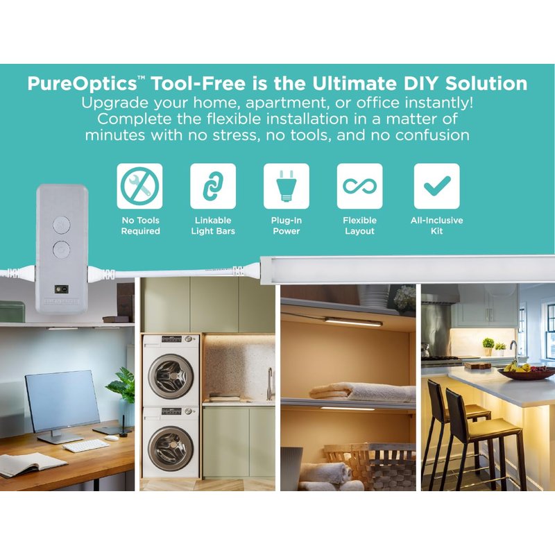 - NO TOOLS REQUIRED: Install your LED lighting kit in a few easy steps. Simply peel away the bar mounting clip backing, stick the bar to your desired location, connect the wires to the bars, and plug in your power for brilliant, frustration-free lighting
