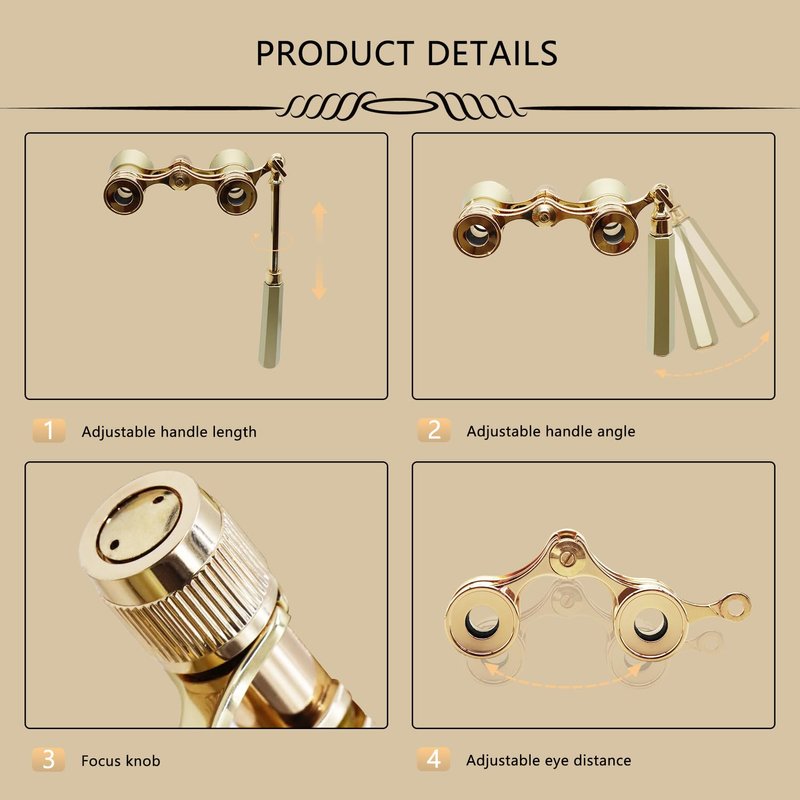 - Elegant and Exquisite - Opera Glass binoculars feature an elegant and vintage design, with a built-in foldable handle and a neck chain for added convenience. This combination of elegance and practicality ensures durability. Whether for men or women, these opera glasses with a chain are fashionable and modern accessories.