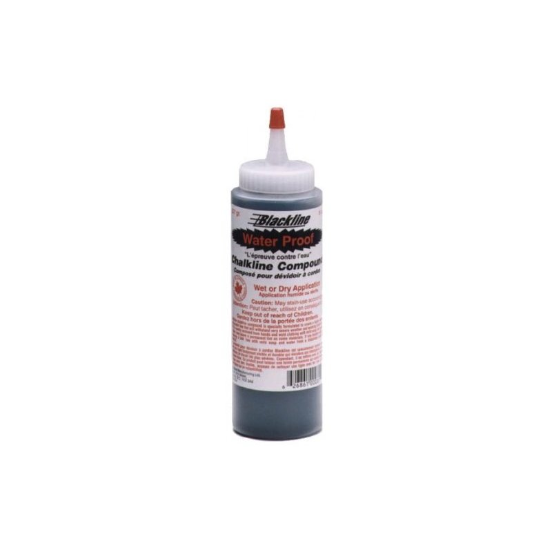 Blackline Water Proof Chalk Line Compound - Designed to be used in any chalk reel and is easily removed from hands and work clothing with mild soap and water. Water Proof, will not wash off even under heavy downpours. Saves time and money. Snaps a clean solid line. Out performs traditional chalk with less smudging creating a clean, easy to read line. Easily washed away with mild soap & water from hands and work clothing. Resists being blown away, layouts can be done in windy conditions. Wet or Dry application, can be applied to wet surfaces. Simply remove all excess water and SNAP the lines. Environmentally Friendly, does not contain any toxic materials and is safe for the environment.