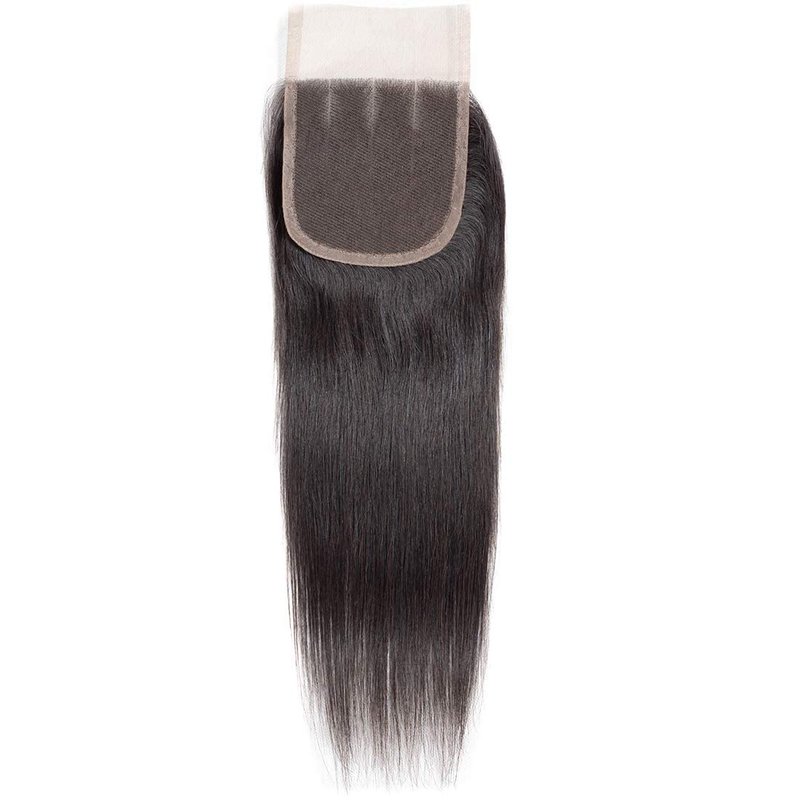 - Hair Texture: Silky Straight bunldes with three part lace closure.