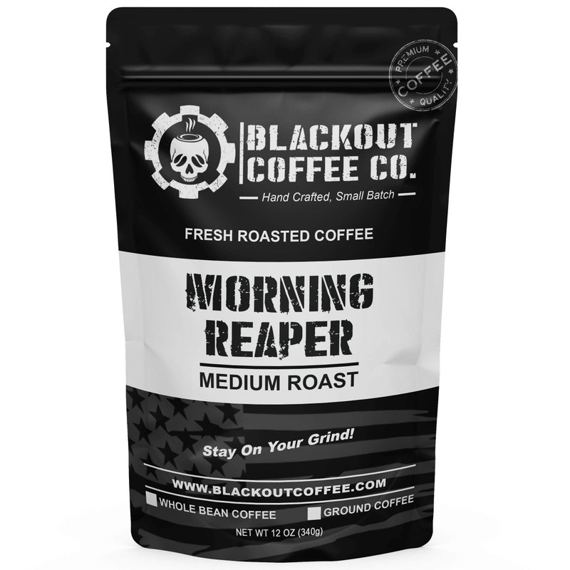 Blackout Coffee, Morning Reaper Medium Roast Coffee, Bold, Strong Aromatic & Super Smooth Flavor, Fresh Roasted in the USA – 12 oz Bag (Ground Coffee)