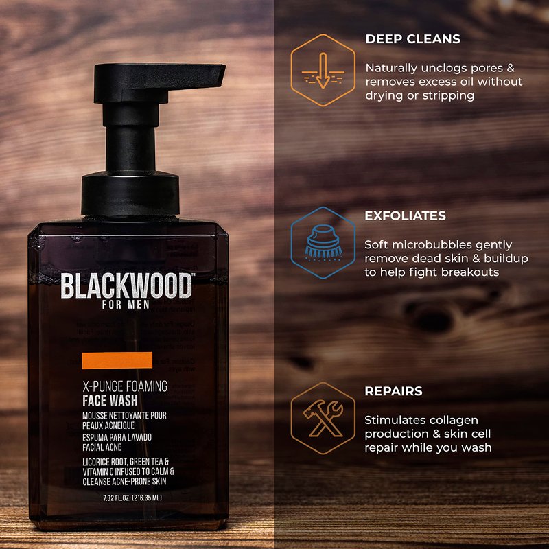 Blackwood For Men X-Punge Foaming Face Wash - Organic & Natural Acne Facial Cleanser For Oily to Normal Skin - Deep Cleanse for Exfoliation - Paraben Free, Sulfate Free, & Cruelty Free (7.32 oz)