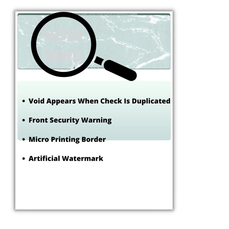 - Our blank check paper incorporate multiple advanced anti fraud protection features such as micro-print lines, security screens, and artificial watermarks, and other High Security features, making it hard to copy by fraudsters.
