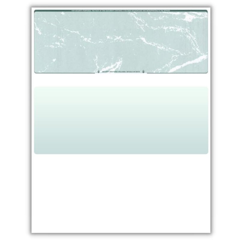 Blank Check Paper, Computer Checks Compatible with QuickBooks and Any Laser Printer, Secure Check on top Voucher on Bottom (50 Blank Checks, Green Marble)