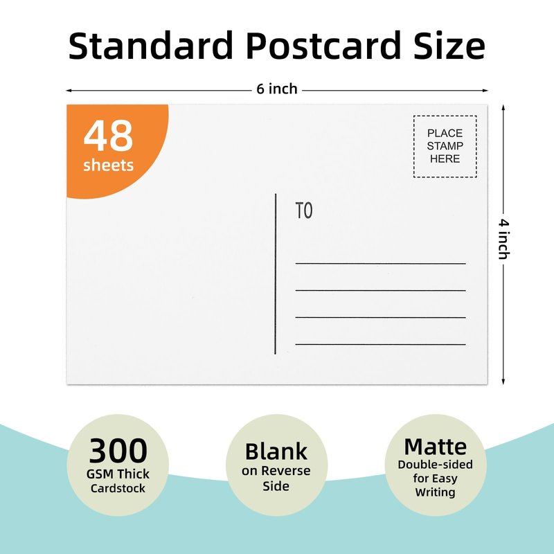 - Postcards Dimension: Each set includes 48 blank postcards, perfectly sized at the standard 4x6 inches and crafted from 300 gsm white cardstock, offering a sturdy feel and premium quality