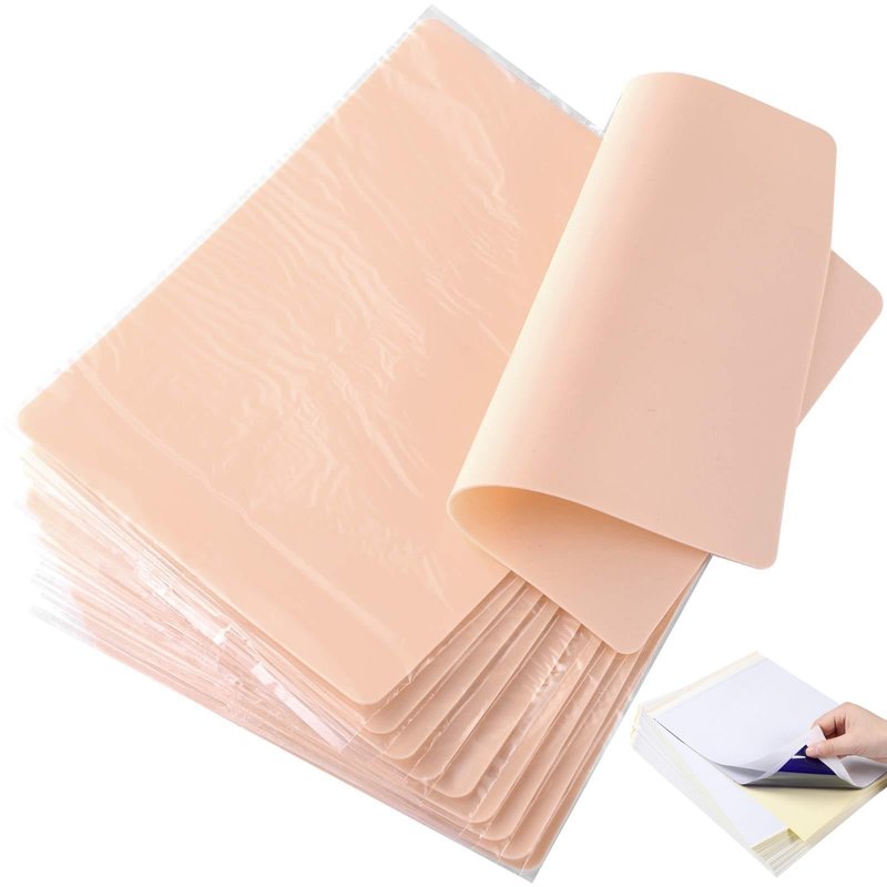 - TATTOO PRACTICE SKIN KIT:Includes 10 pieces of 8x6 inch blank tattoo fake skin and 10 pieces of A4 size transfer paper, totaling 20 items. Tattoo practice skin and transfer paper are the perfect combination to help you save time and get a great deal. Each piece of fake skin is individually wrapped for your convenience in storage and use.