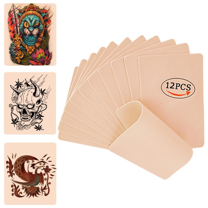 Blank Tattoo Skin Practice - UPTATSUPPLY 12 Pieces Tattoo Practice Skin - 6"x8" Double Sides Fake Skin Tattooing Microblading Practice Skin for Beginners and Experienced Tattoo Artists(0.12CM Thick)