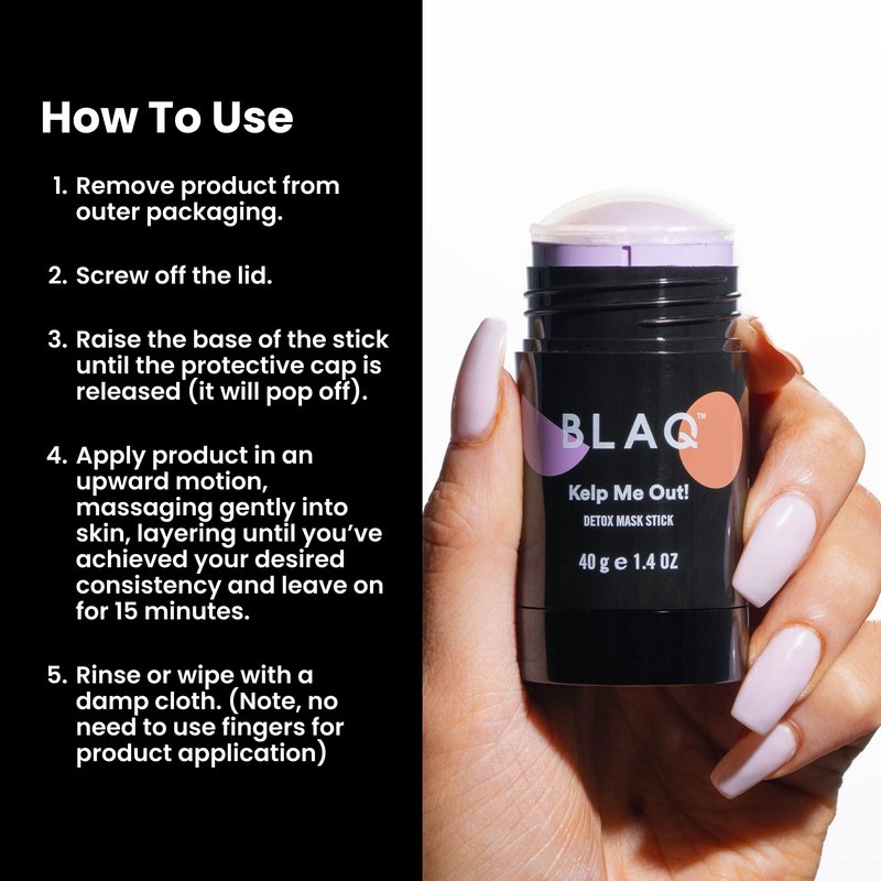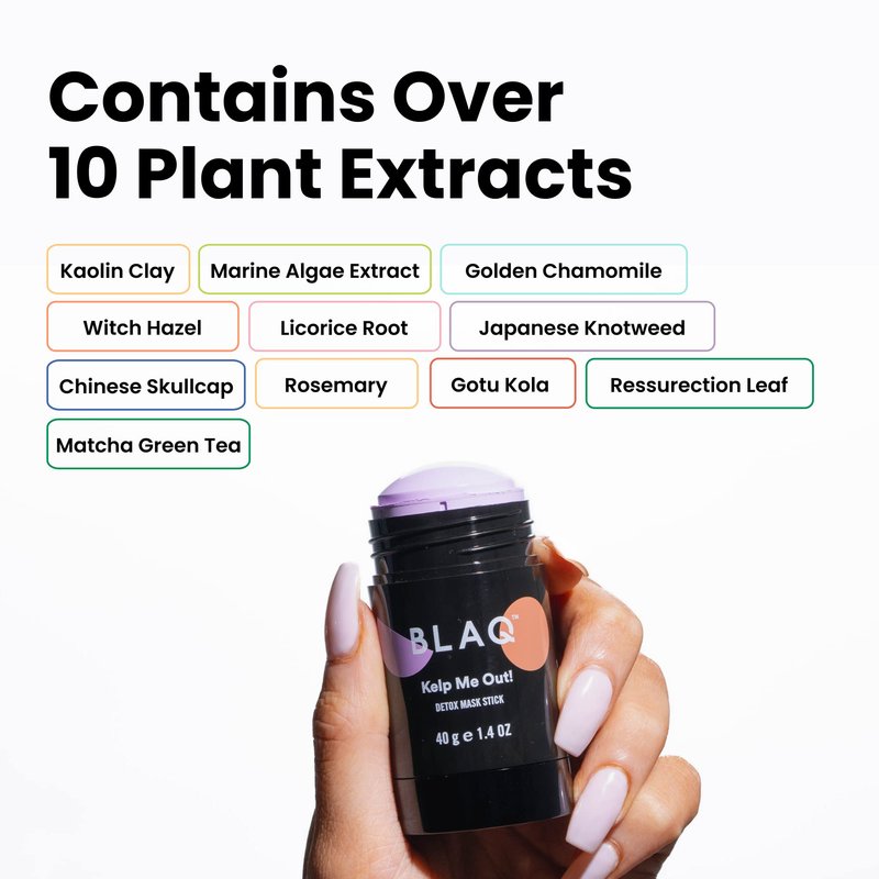 BLAQ Kelp Me Out Detox Mask Stick with Marine Algae and Kaolin Clay - Fast, mess free application - To calm, nourish, purify, protect, rejuvenate tired, dull-looking skin with anti-aging properties