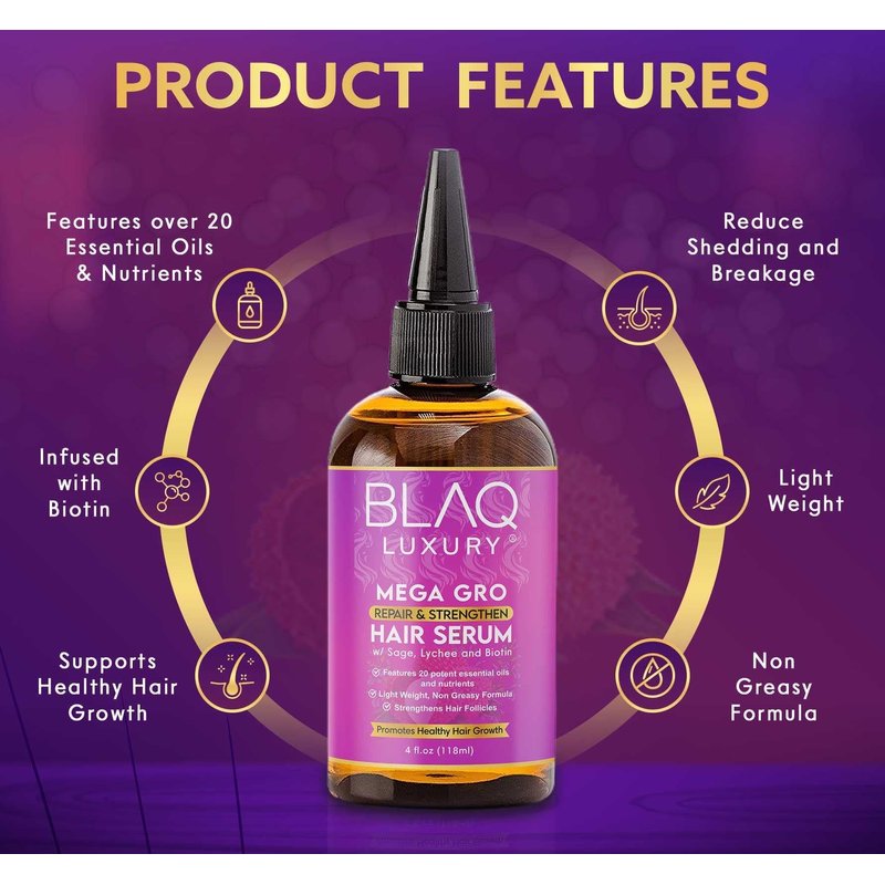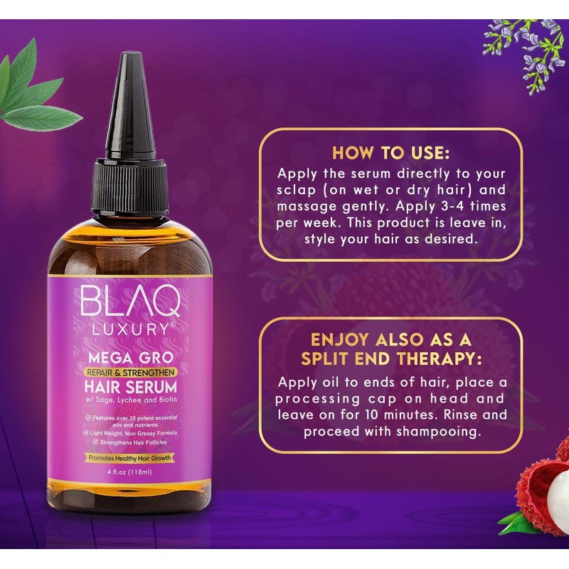 Blaq Luxury Hair Growth Oil - Dry Scalp Treatment For Dry Itchy Scalp With Biotin for Repair & Strengthening, Hair Serum for Frizzy and Damaged Hair, Split End Treatment for Women, 4oz (2 Pack)