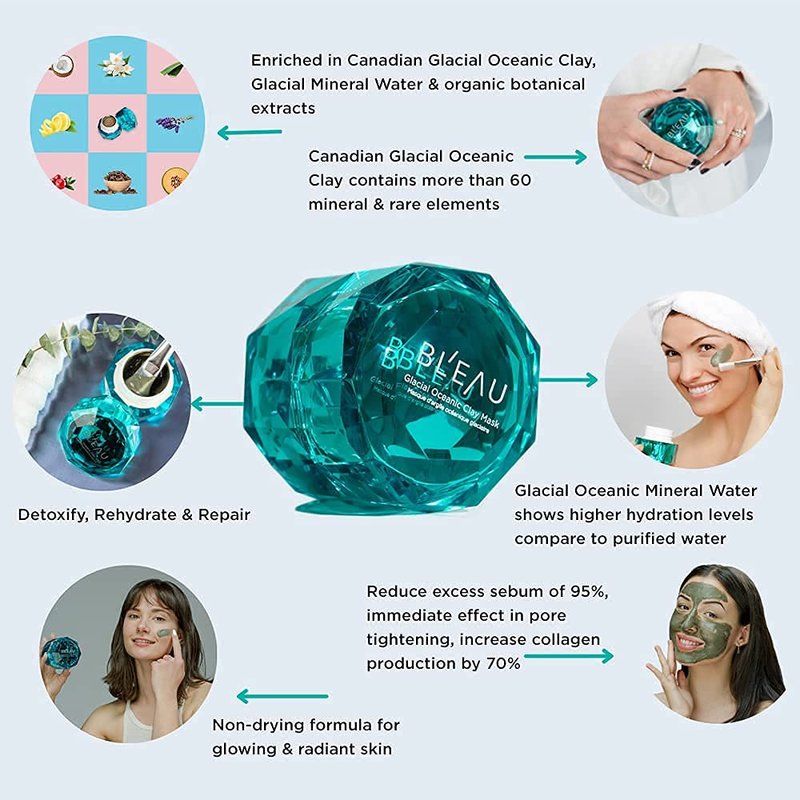 - 100% NATURAL GLACIAL OCEANIC CLAY UNIQUE TO CANADA : our clay is sourced uniquely from British Columbia, Canada where glaciers melted with the ocean, nowhere else in the world. Enriched by the continuous flow of ocean and glaciers, the clay has absorbed more than 60 minerals and skin-nourishing elements to promote healthy skin.